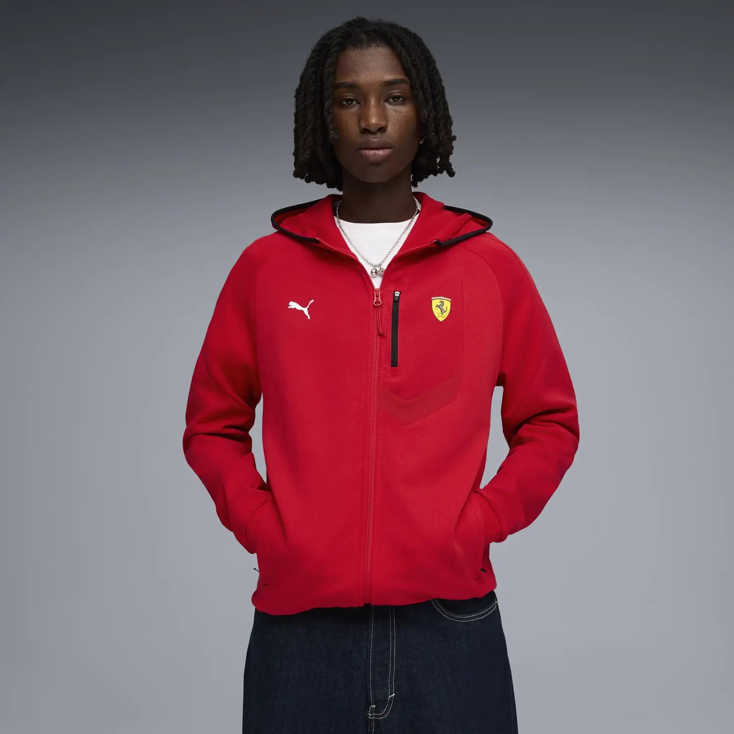 Emeld a stílusodat a PUMA Ferrari Hoodie PM1-el, amely lenyűgöző piros színben készült, a kényelem és a teljesítmény érdekében. Újrahasznosított és organikus pamut keverékéből készült, ez a könnyű francia terry kapucnis pulóver légáteresztő és puha tapintású, miközben UPF védelmet nyújt kültéri tevékenységekhez. Tökéletes a modern férfi számára, sportos esztétikáját az ikonikus Ferrari márkázás gazdagítja, így alapdarabja lehet aktív viseleteidnek.