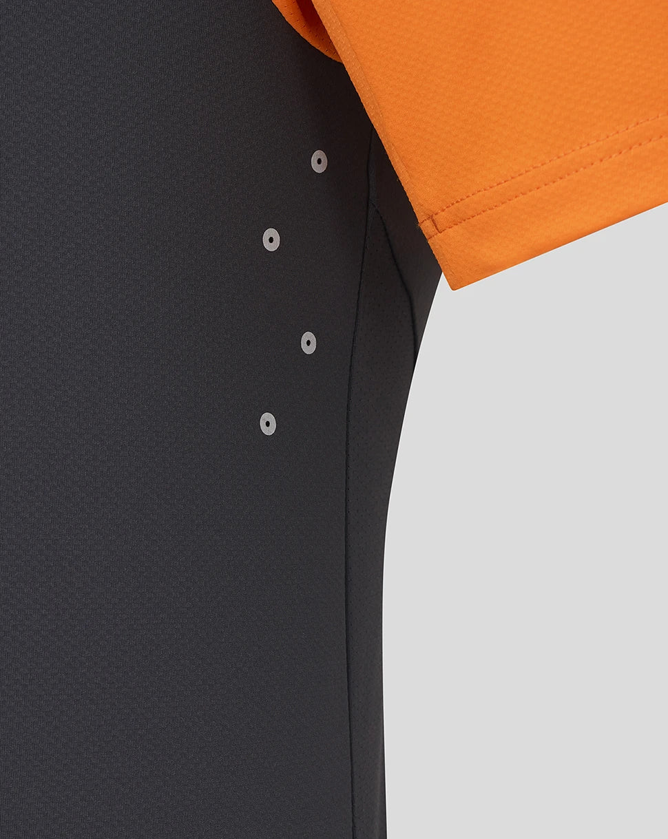 Ein stylisches und bequemes McLaren F1 Team Setup T-Shirt für Fans des McLaren Racing Teams. Dieses offizielle T-Shirt hat ein modernes Design und besteht aus einer Mischung aus Polyester und Elastan, die für eine perfekte Passform und Haptik sorgt. Ideal zum Tragen auf der Rennstrecke oder für alltägliche Anlässe, um Ihre Unterstützung für eines der renommiertesten Teams der Formel 1 zu zeigen. Perfekt für jeden McLaren-Fan, der seinen Stolz auf sein Team ausdrücken möchte. Das T-Shirt ist leicht und atmungsaktiv und somit eine tolle Ergänzung Ihrer Garderobe, insbesondere während der Wettkampfsaison.