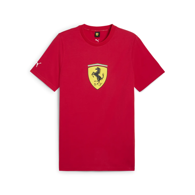 For this collection, we transform simple and sophisticated spring-summer clothing. We focus on tradition and innovation, uniting the Scuderia Ferrari team and their fans into one brand, one team. Combining revolutionary technological solutions and tailored designs, this stylish T-shirt proudly displays the Ferrari emblem. The high-quality cotton blend ensures comfort and breathability, making it perfect for both everyday wear and supporting the team on race days. Make a statement and show your passion for Ferrari with this eye-catching piece of clothing.