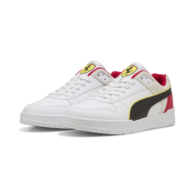 A retro-style sneaker inspired by classic pop culture and basketball style, this sneaker helps you stay low-key on and off the court. The relaxed, nostalgic style embodies an old-school vibe, with a contrasting design of the classic PUMA Formstrip and discreet big-cat branding. The unique color combination, including White and Rosso Corsa, is not only fashionable, but also comfortable for everyday wear. Whether on the court or at home, these low-top shoes offer the perfect combination of fashion and function. Experience the heritage of Ferrari and PUMA with every step you take.